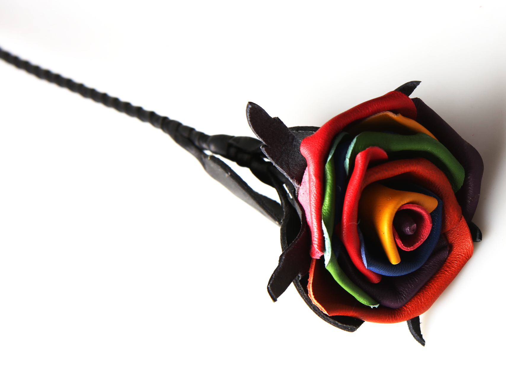 Produktinformationen "Leder Rose - Regenbogen - schwarze Blätter"